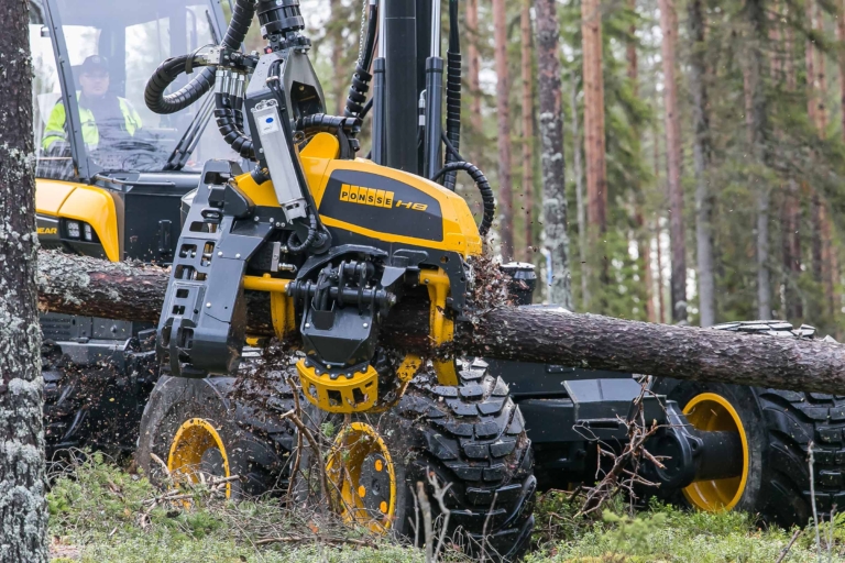 harvestorová hlavica PONSSE H8 je ideálna aj pre viackmenné spracovanie. Geometria valcov a odvetvovacích nožov je vynikajúca aj na zber a rezanie stromov väčších priemerov.
