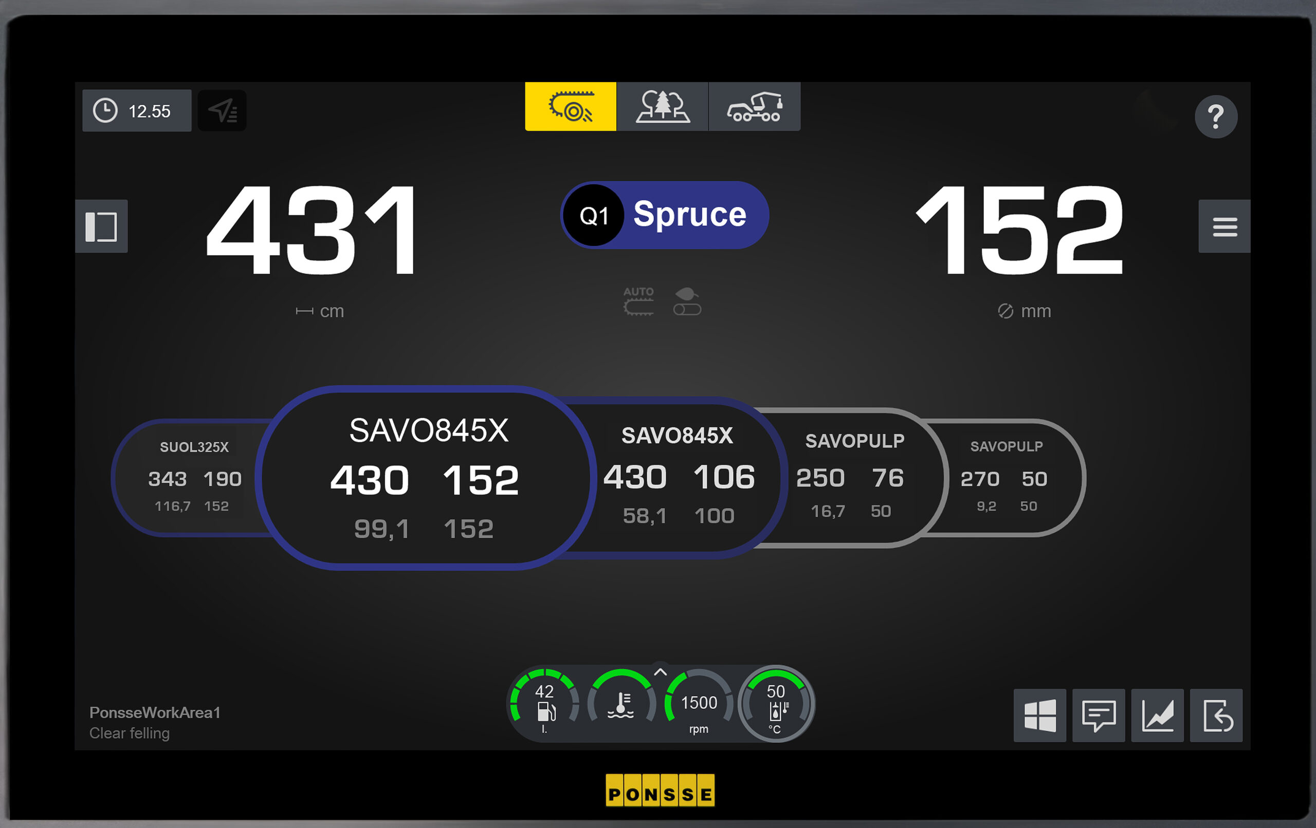 Potreby konečného užívateľa dreva určujú, ako sa guľatina reže na mieste. Automatizácia Opti uľahčuje prácu operátora tým, že riadi rezanie guľatiny podľa požiadaviek uložených v systéme. Systém Opti Control spája všetky ovládacie prvky stroja do jedného systému, vďaka čomu sú namerané hodnoty stroja, nastavenia a zarovnania ľahko dostupné. V kombinácii s harvestorovou hlavicou PONSSE zaručuje efektívny informačný systém rýchle spracovanie dreva počas ťažby, presné merania a vysokú produktivitu.
